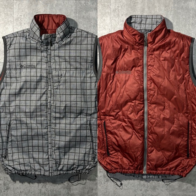 ご覧頂きありがとうございます! グレーチェック × ボルドーキルティングという、2面でまったく違う表情を楽しめるリバーシブルベスト。チェック側はカジュアル寄り、ボルドー側はほんのりアウトドア感のある落ち着いた雰囲気。 中綿プリマロフト素材が使用されており さらにレイヤードしやすく、シャツやスウェットの上にさっと重ねるだけでスタイリングの幅が広がります。 ●サイズ サイズ表記 : XL 着用感 : メンズXL 着用モデル : 178cm 肩幅48cm 身幅61cm 着丈76cm アームホール24cm ●カラー グレー、ボルドー ●素材 ナイロン、ポリエステル ●状態 使用感あるもシミなし 古着特有の使用感、極小の汚れはご理解お願いします。当方が気になった部分については写真や記載をさせていただく形とさせていただいております。 ●その他 可能な限り迅速な発送を心がけておりますのでどうぞ宜しくお願いします。