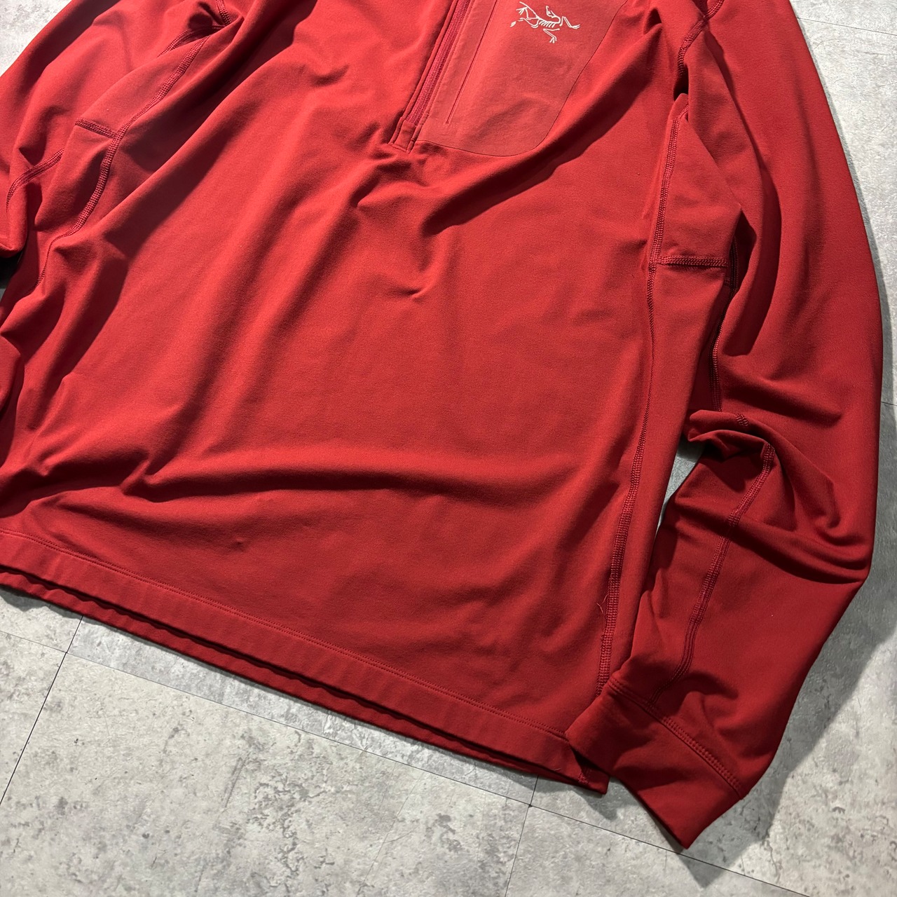 Arc’teryxがミッドレイヤーとして開発してきたRhoシリーズの中でも、最も汎用性が高いLTモデル。フリースよりも薄く、それでいて体温を逃がしにくいグリッド構造の素材は、登山やスノースポーツのベースレイヤー由来のテクノロジー。街着としては、アウターの中に仕込んだときの収まりの良さと、1/2ジップ特有の首元の抜け感が魅力で、シェル系ジャケットのインナーに入れると“分かってる人のレイヤード”が完成する一着。