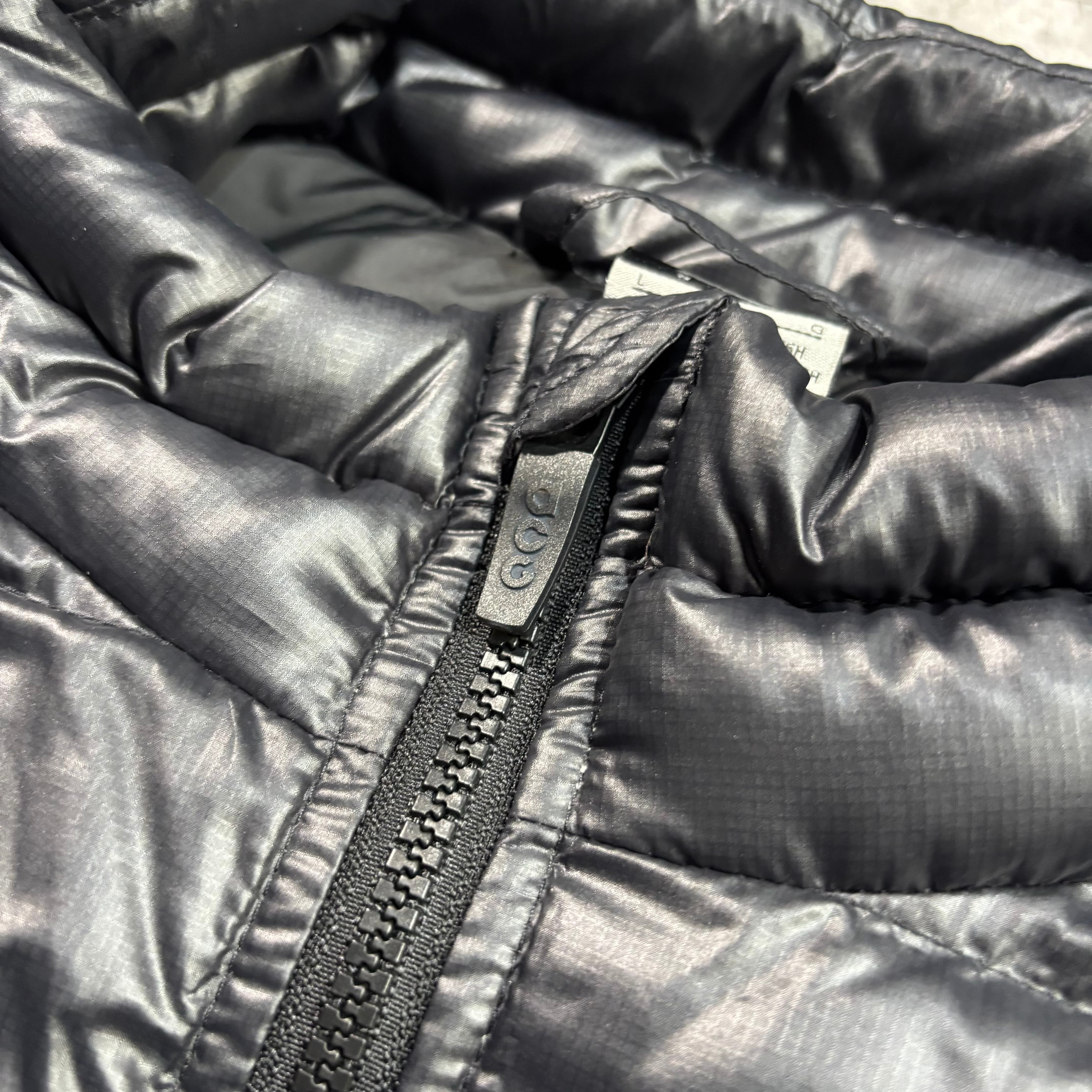 00年代NIKE ACGラインらしい、ミニマルかつ機能性重視のダウンベスト。軽量ながらしっかりとした中綿量で、レイヤード前提のアイテムとして完成度の高い一着です。胸元のACGロゴが程よい主張になり、裾にはドローコードを搭載。インナーにもアウターにも振れる汎用性の高さは、ACGらしい“街でも使えるアウトドアギア”の思想を感じさせます。シーズンを跨いで使える、持っておくと確実に便利なアイテム。