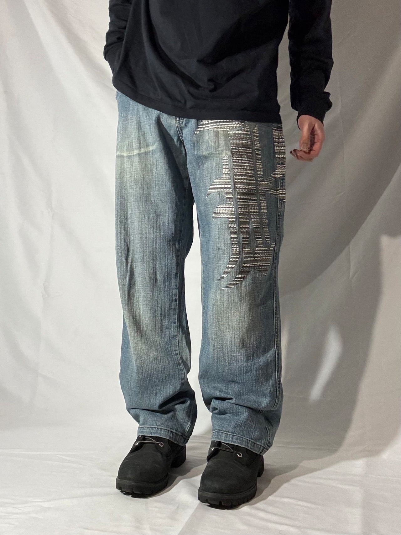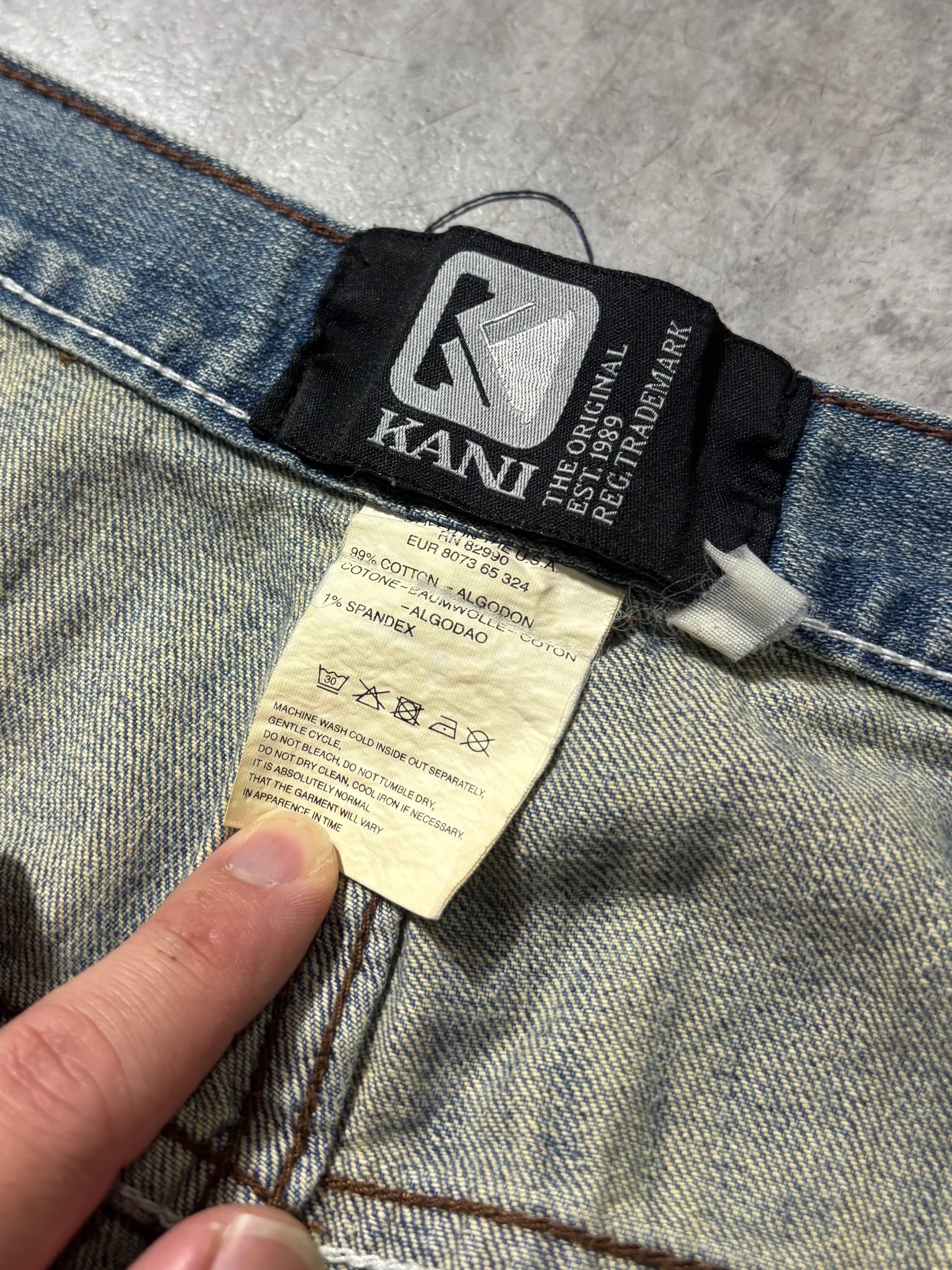 90〜00年代ヒップホップカルチャーを象徴するKarl Kaniらしい存在感を放つデニムパンツ。