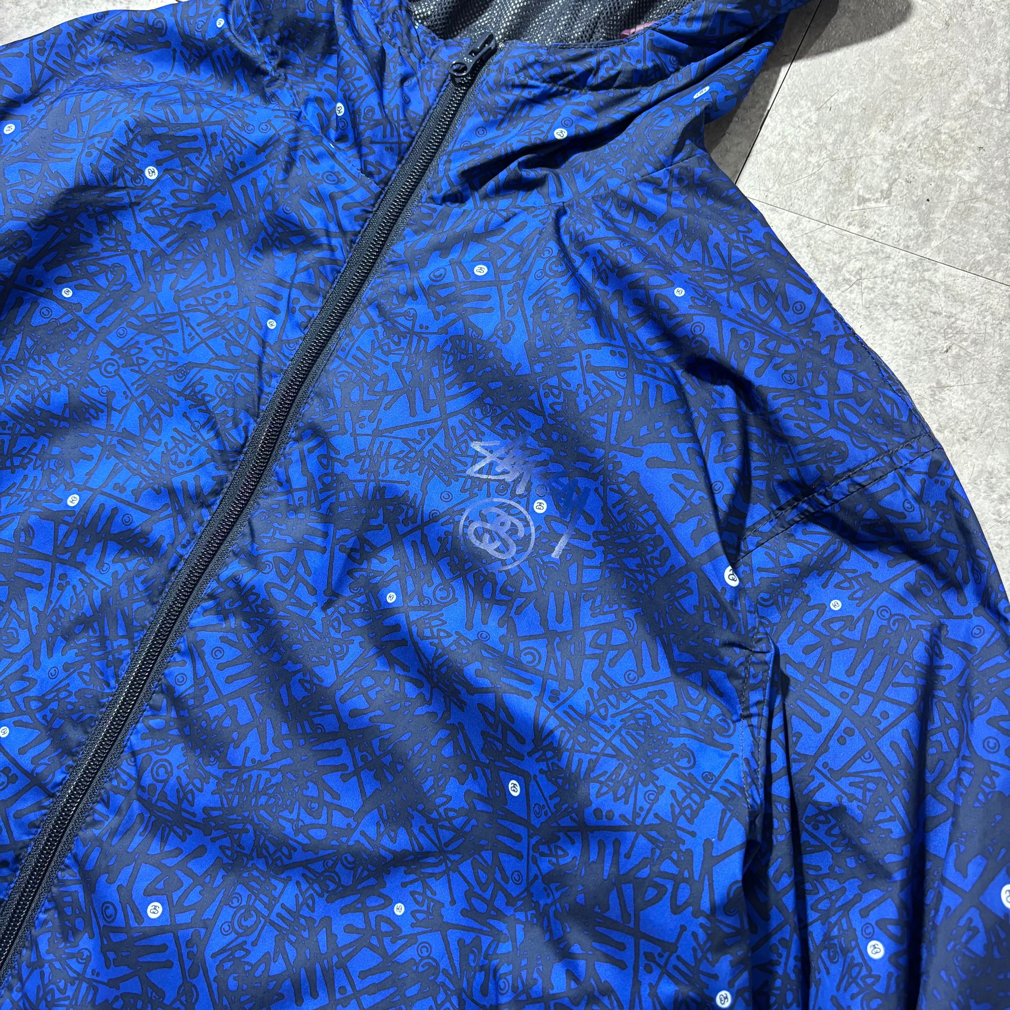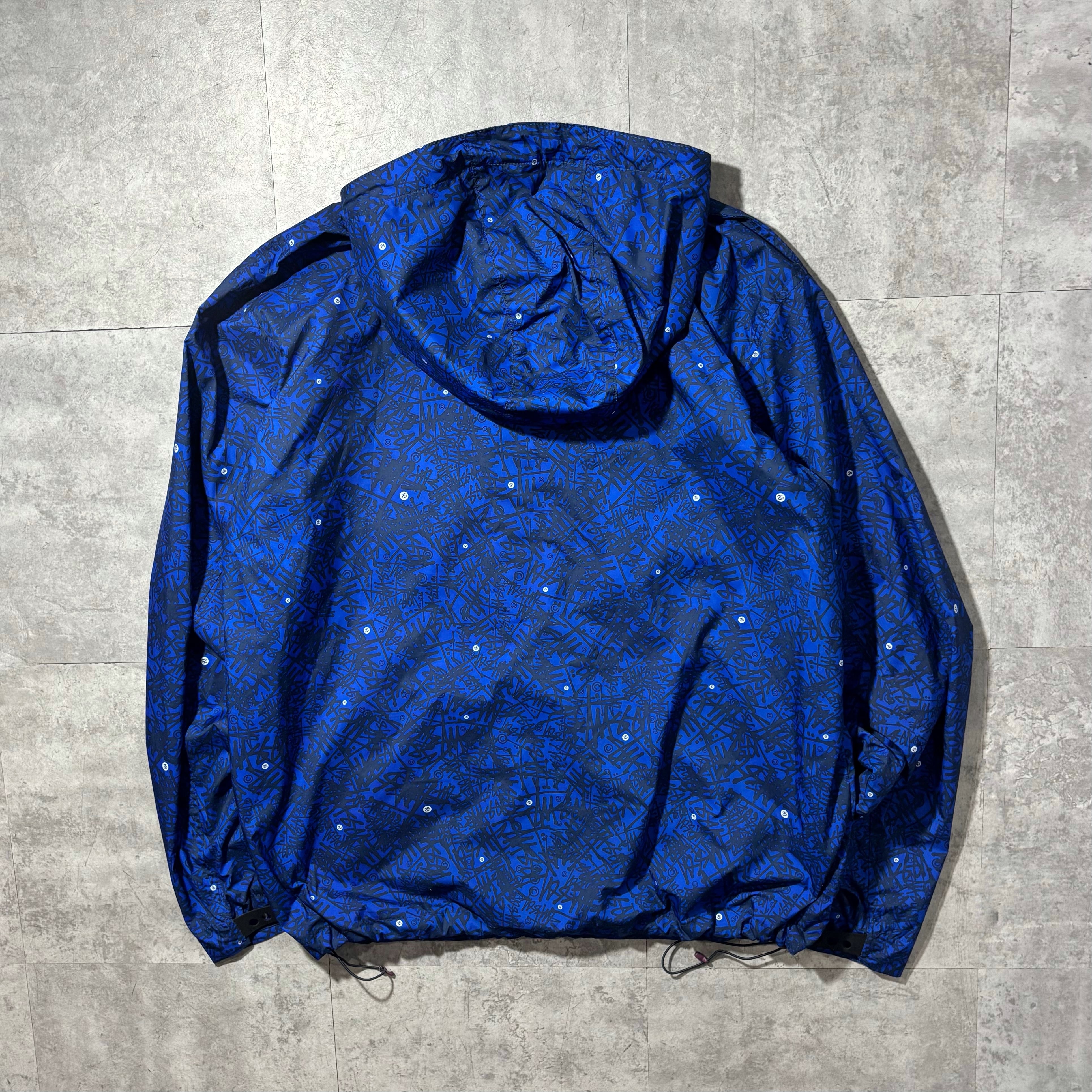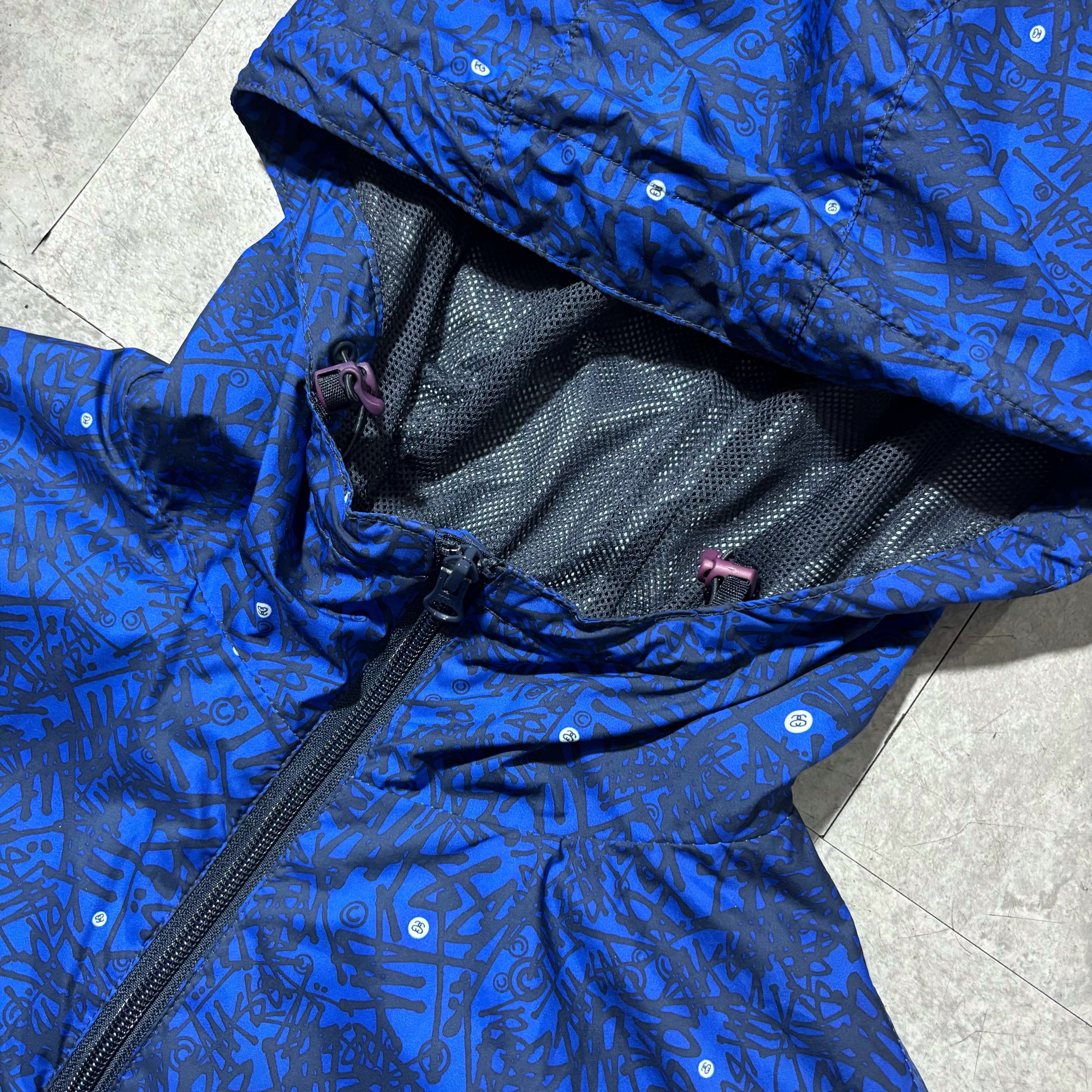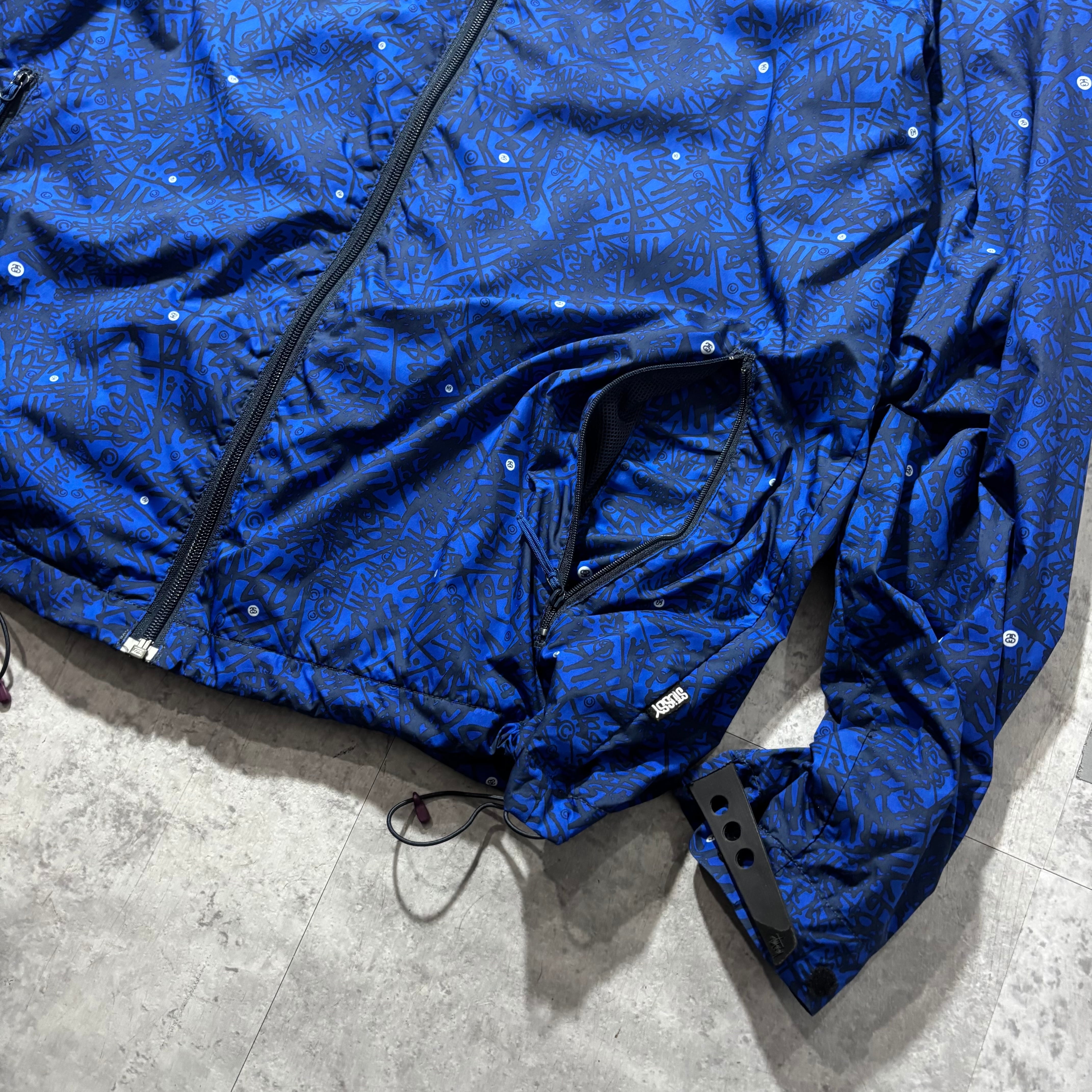 90〜00年代にかけて、STUSSYがストリートだけでなくアウトドア文脈へと踏み込んでいった時代を象徴するナイロンマウンテンジャケット。総柄ながらトーンが抑えられており、意外とスタイリングに取り入れやすい仕上がりです。裾にはドローコードを搭載し、シルエットを絞ることでタウンユース向けのバランスにも調整可能。ブランドの過渡期ならではの空気感を楽しめる一着。