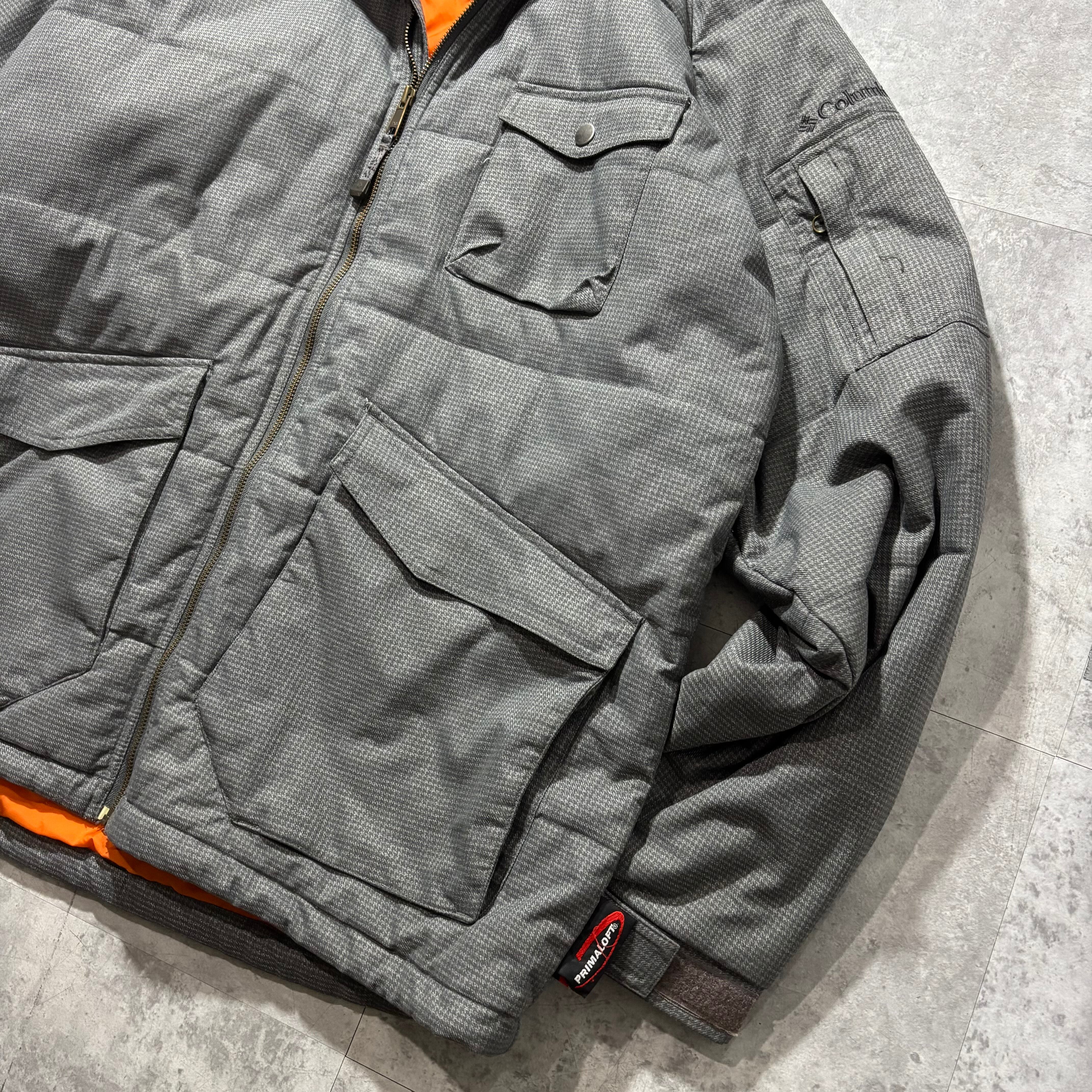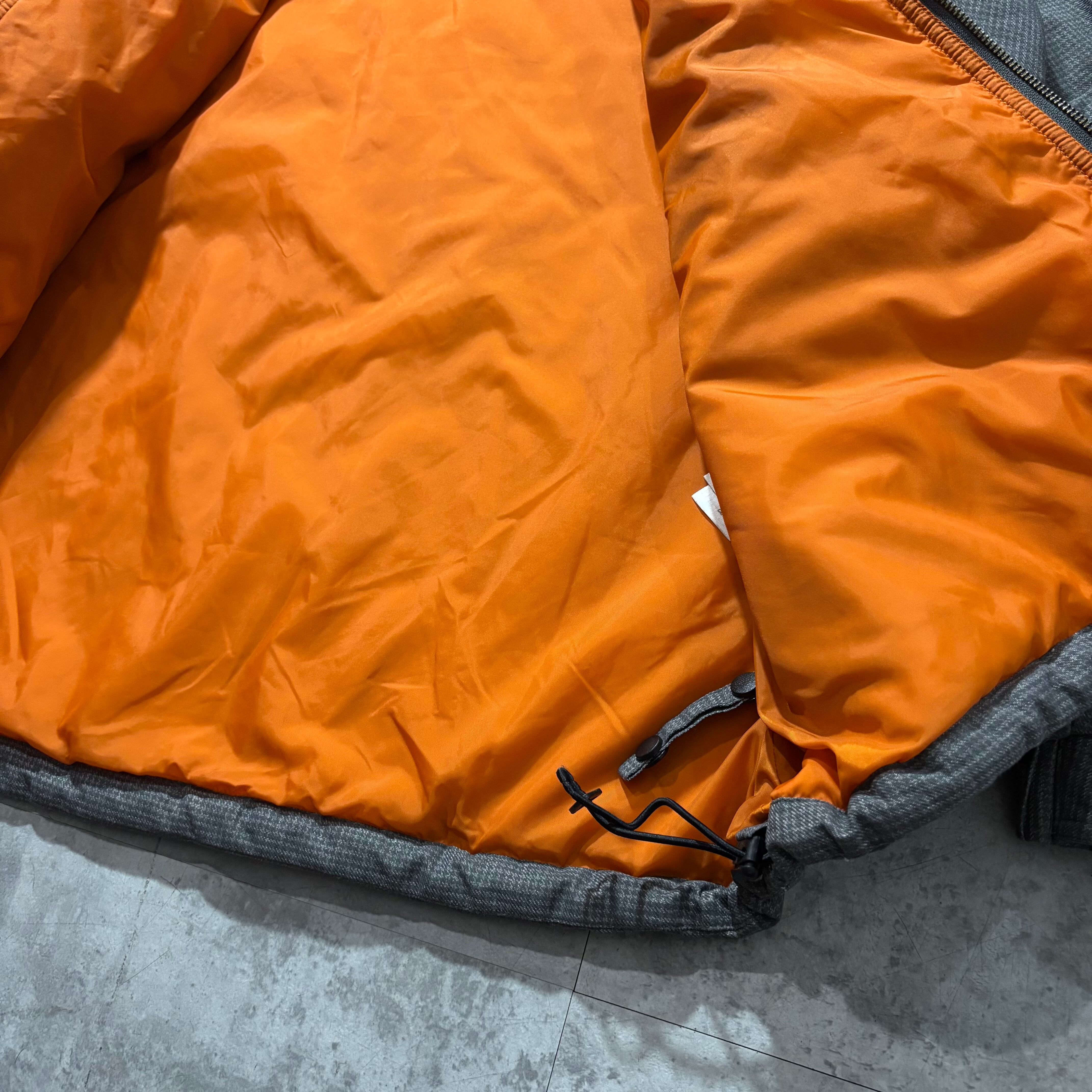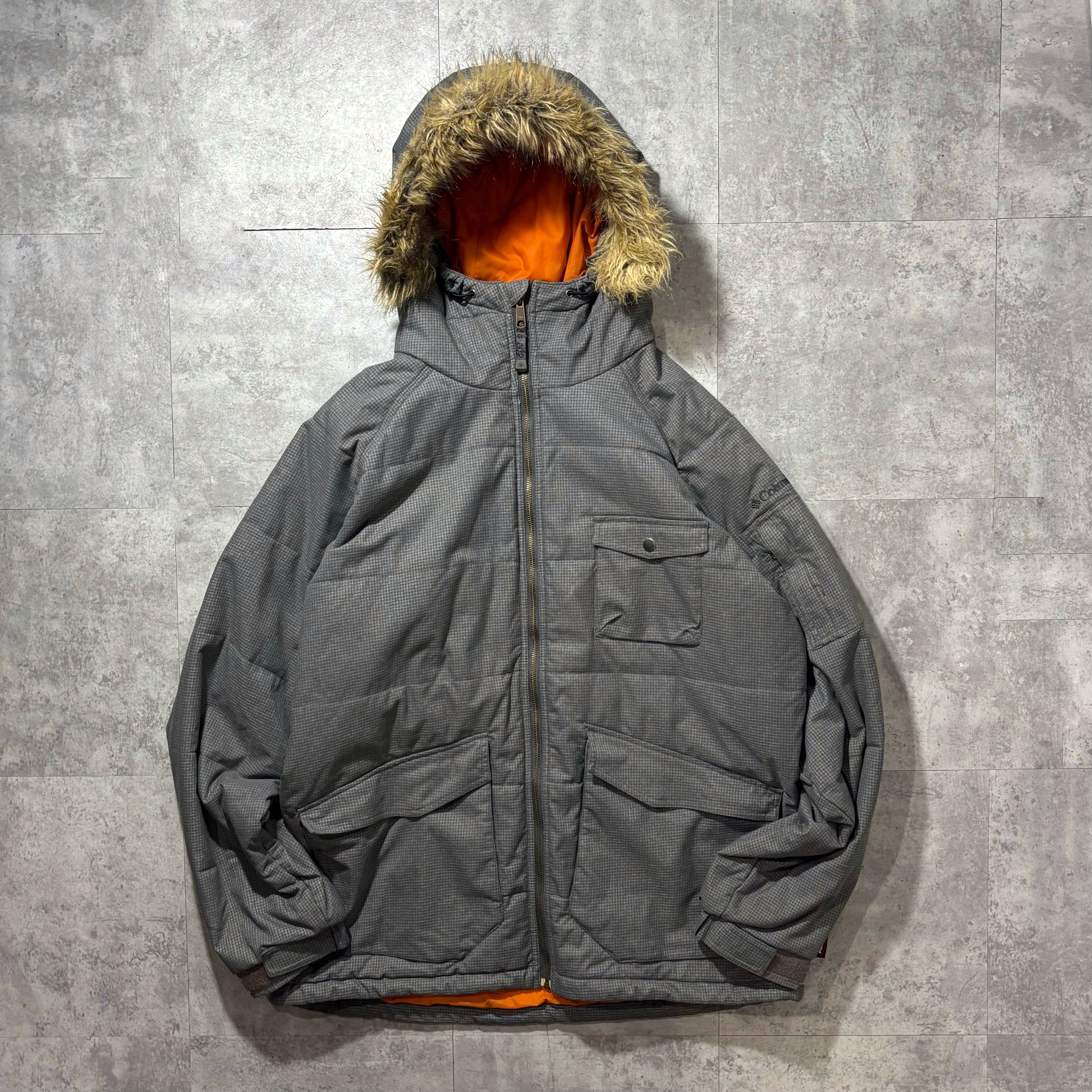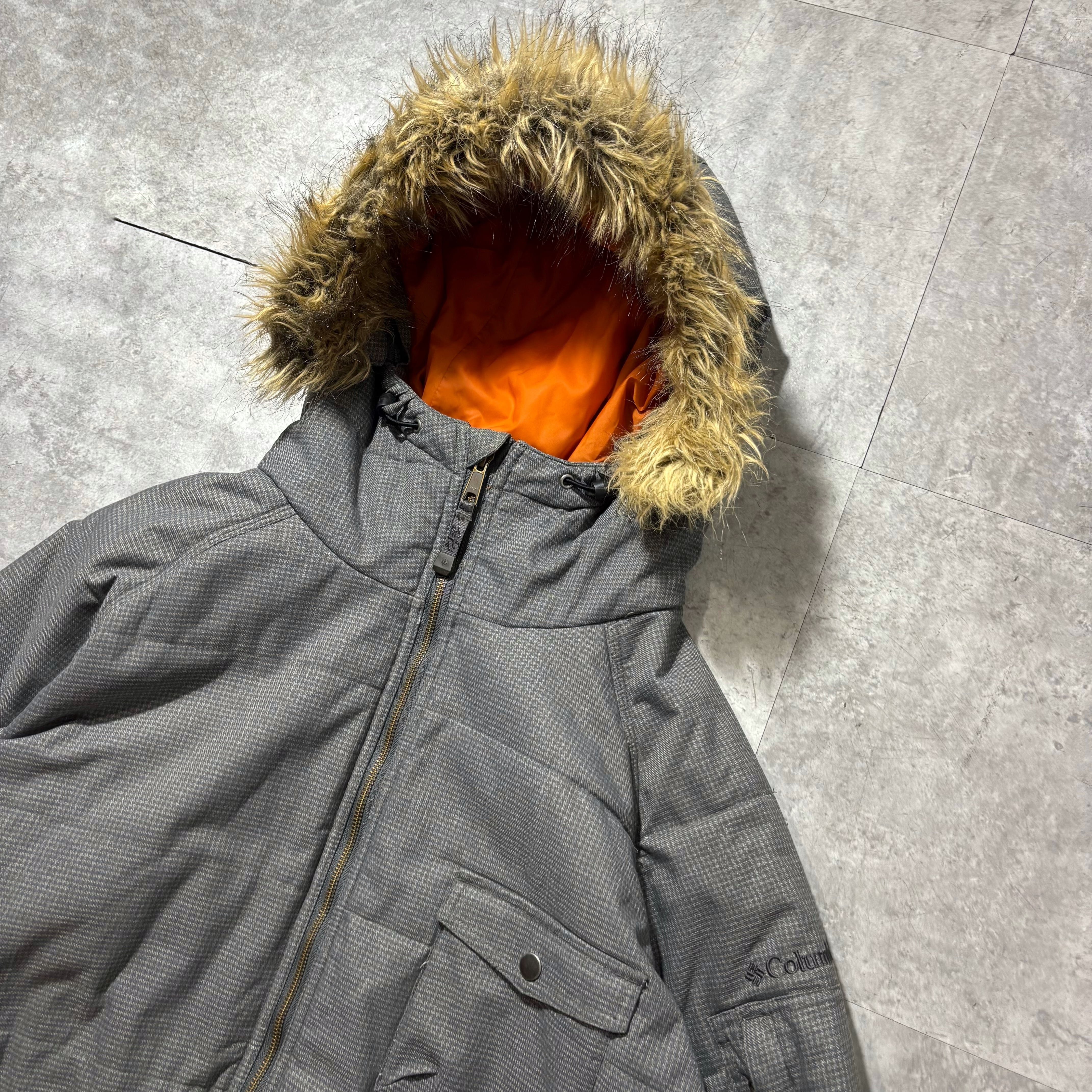 細かなチェック調のシェルに、インナーは発色の良いオレンジライニングという当時らしいカラーコントラストが魅力です。フードのファーは取り外し可能で、冬場は無骨に、防寒を外せば春先まで使える汎用性の高さもポイント。街着としても映えるシルエットで、機能とデザインを両立したColumbiaらしい一着です。