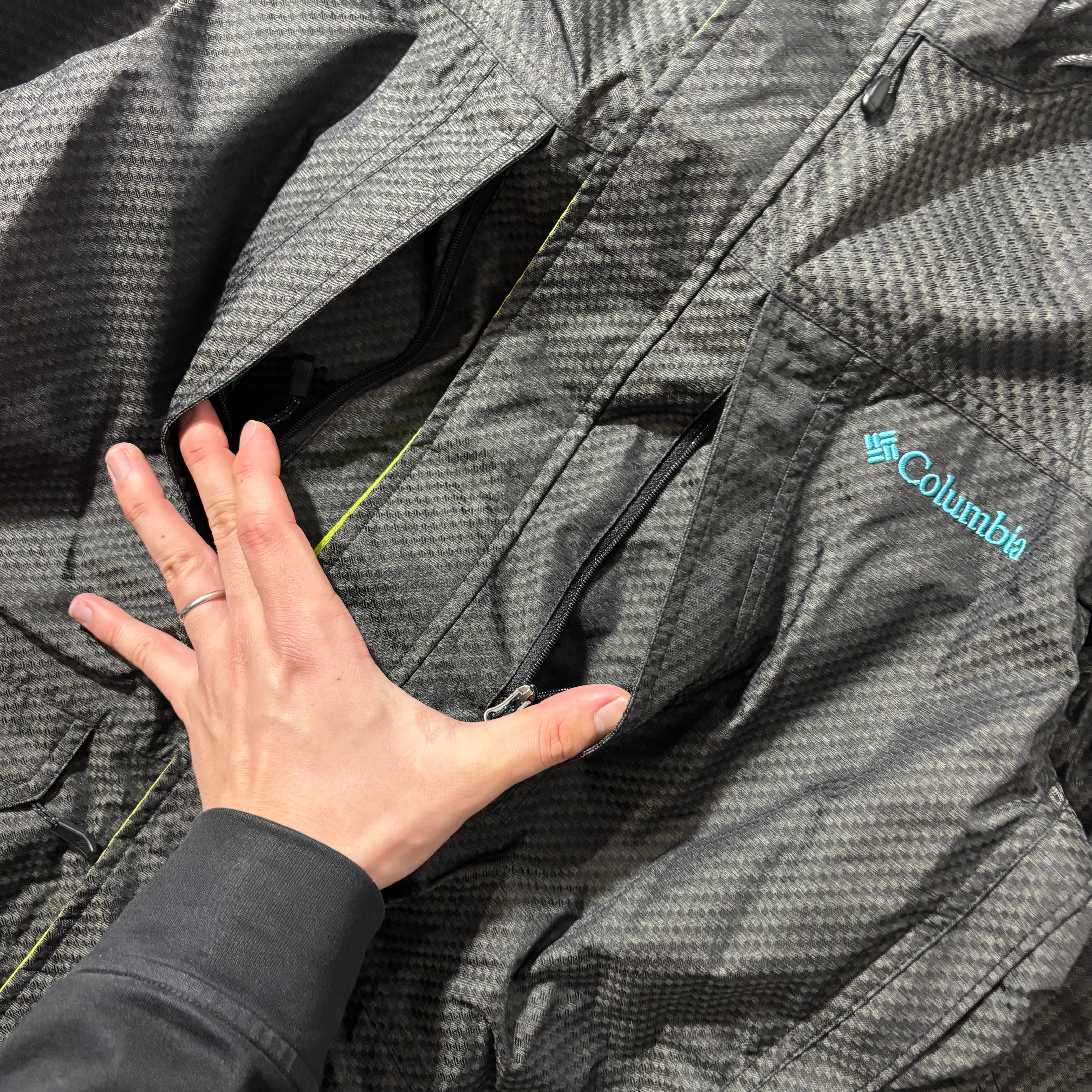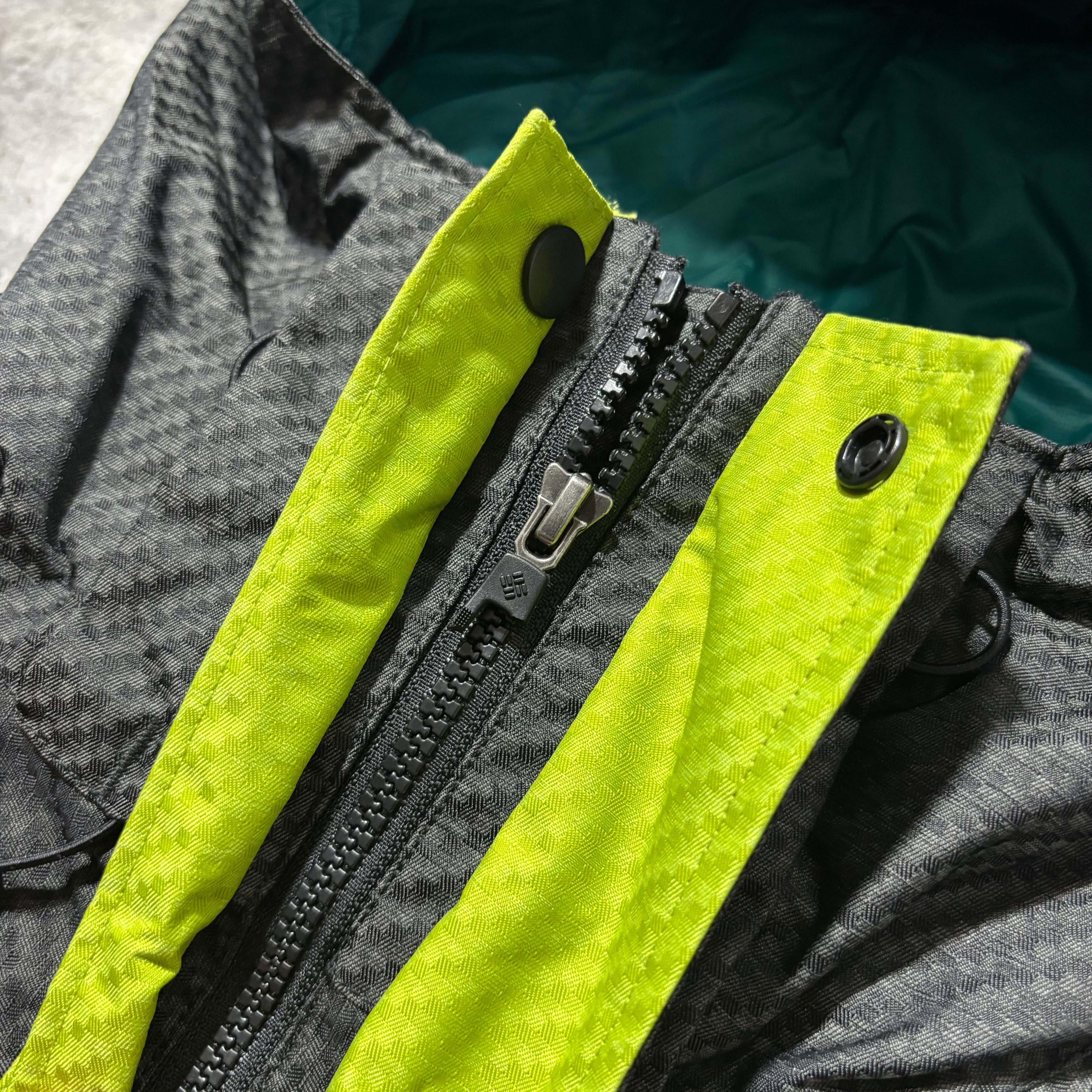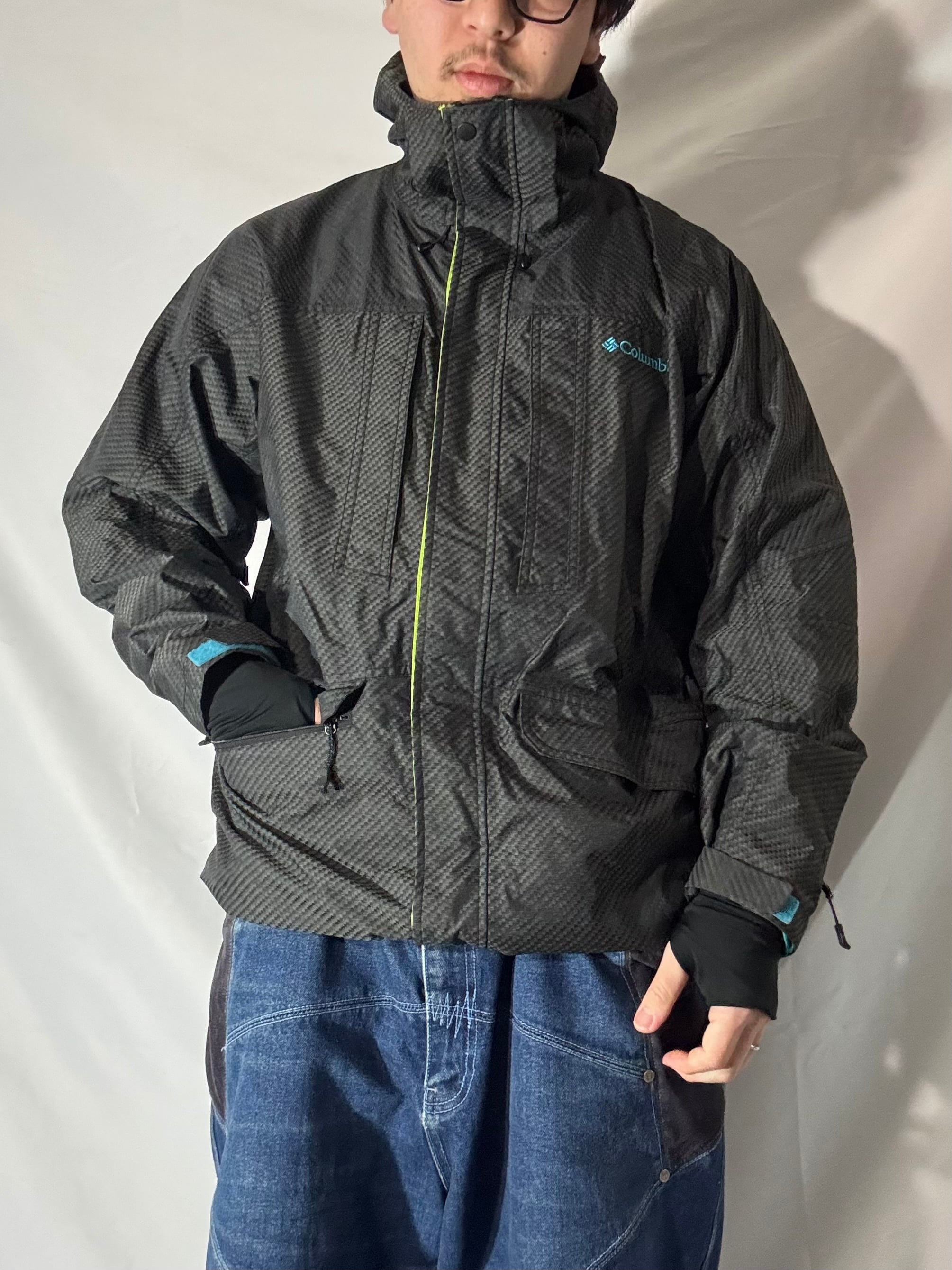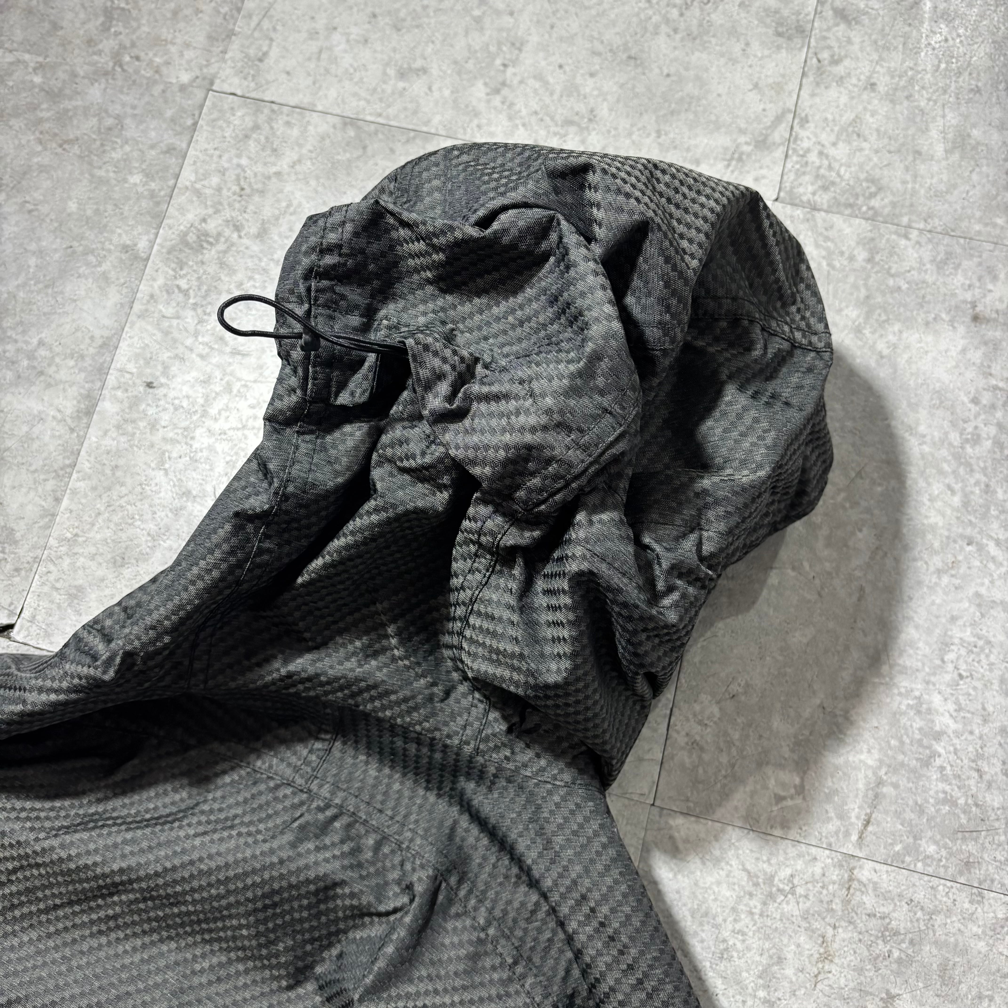 2000年代らしいテック感のあるナイロンシェル。細かなパターンとアクセントカラーが控えめな主張を演出。防風性も十分でレイヤードにも使いやすい実用性の高さが魅力。グレー基調でコーデを選ばず、都会的なバランスに落とし込みやすい1枚。普段使いからアクティブシーンまで幅広く対応。