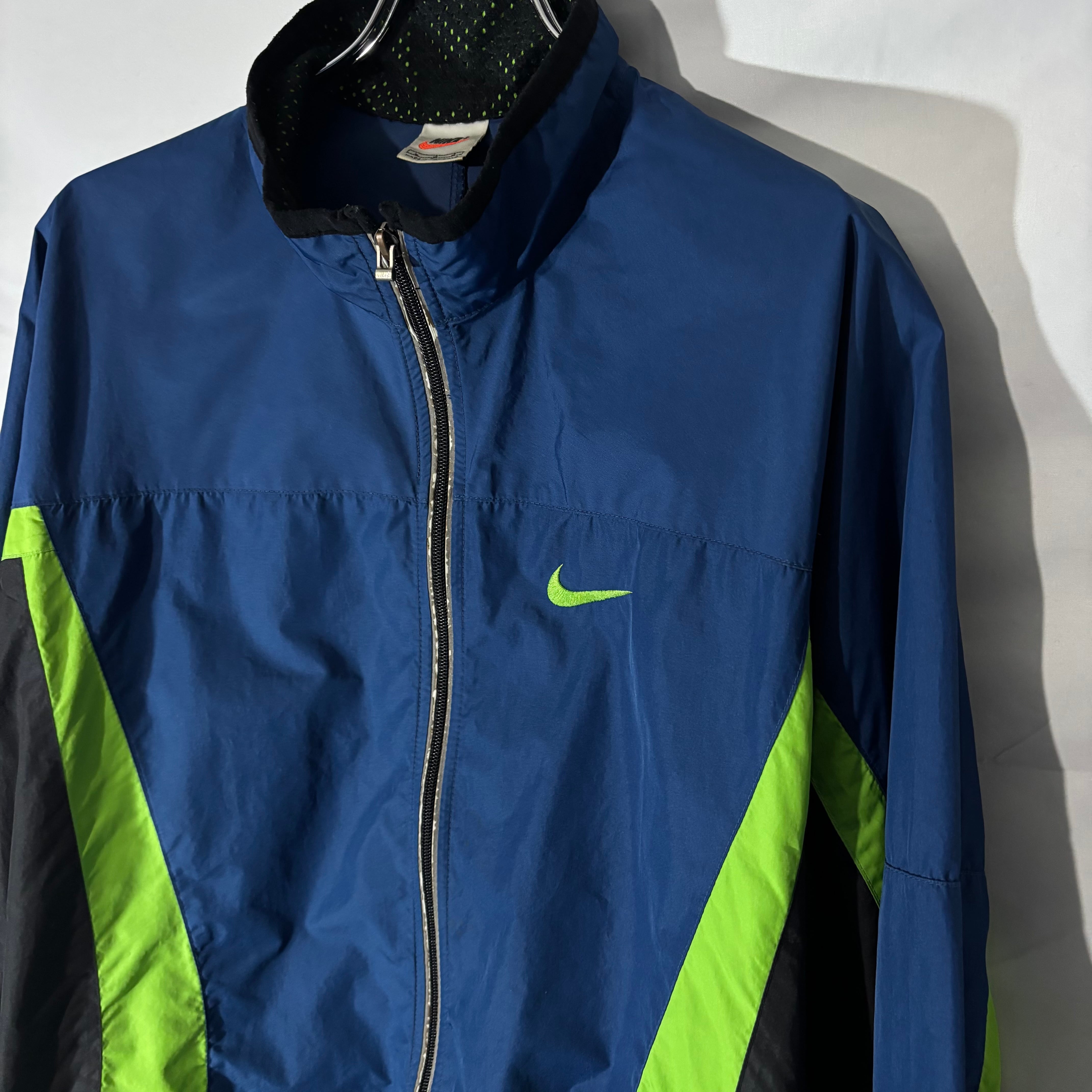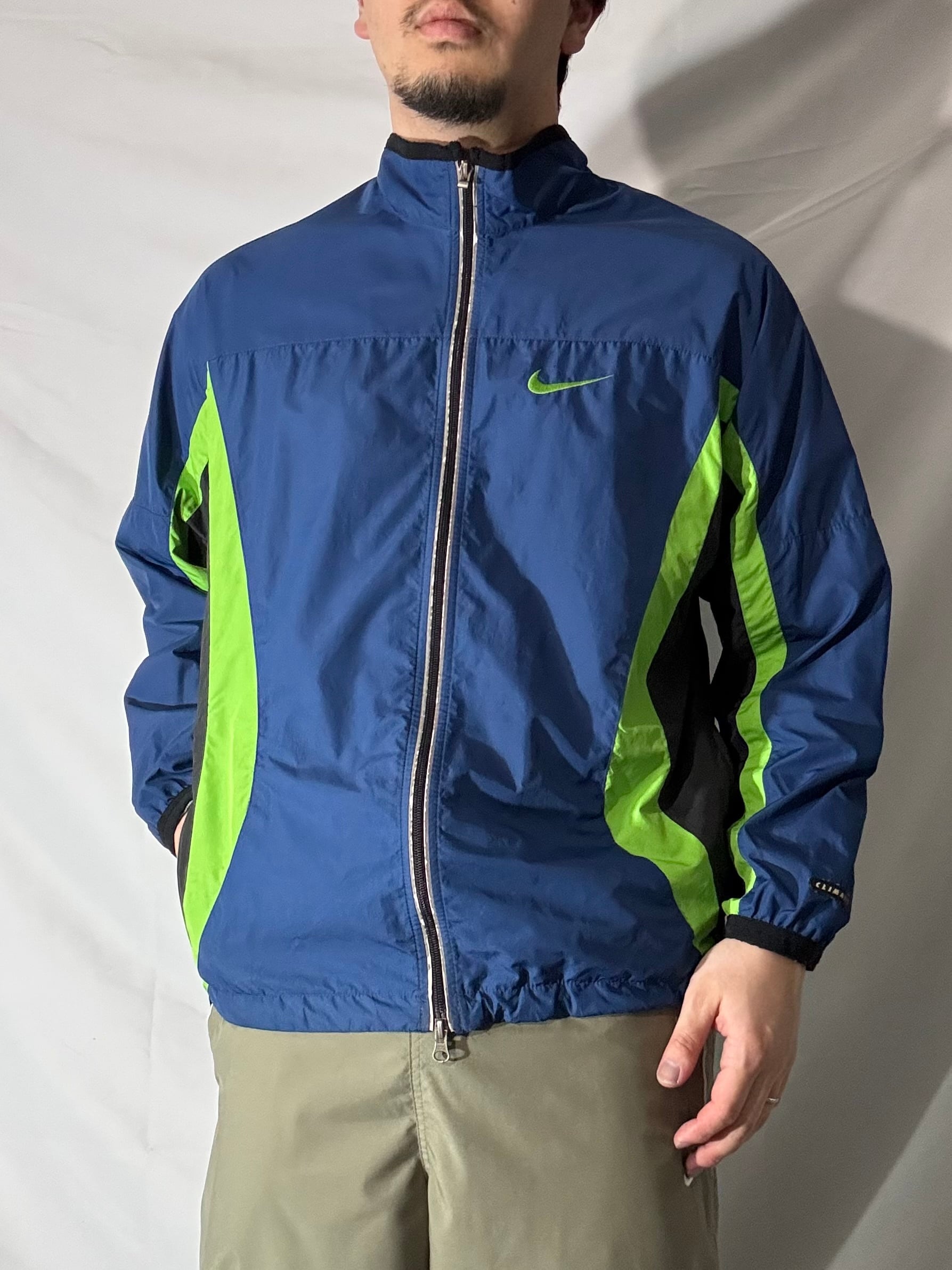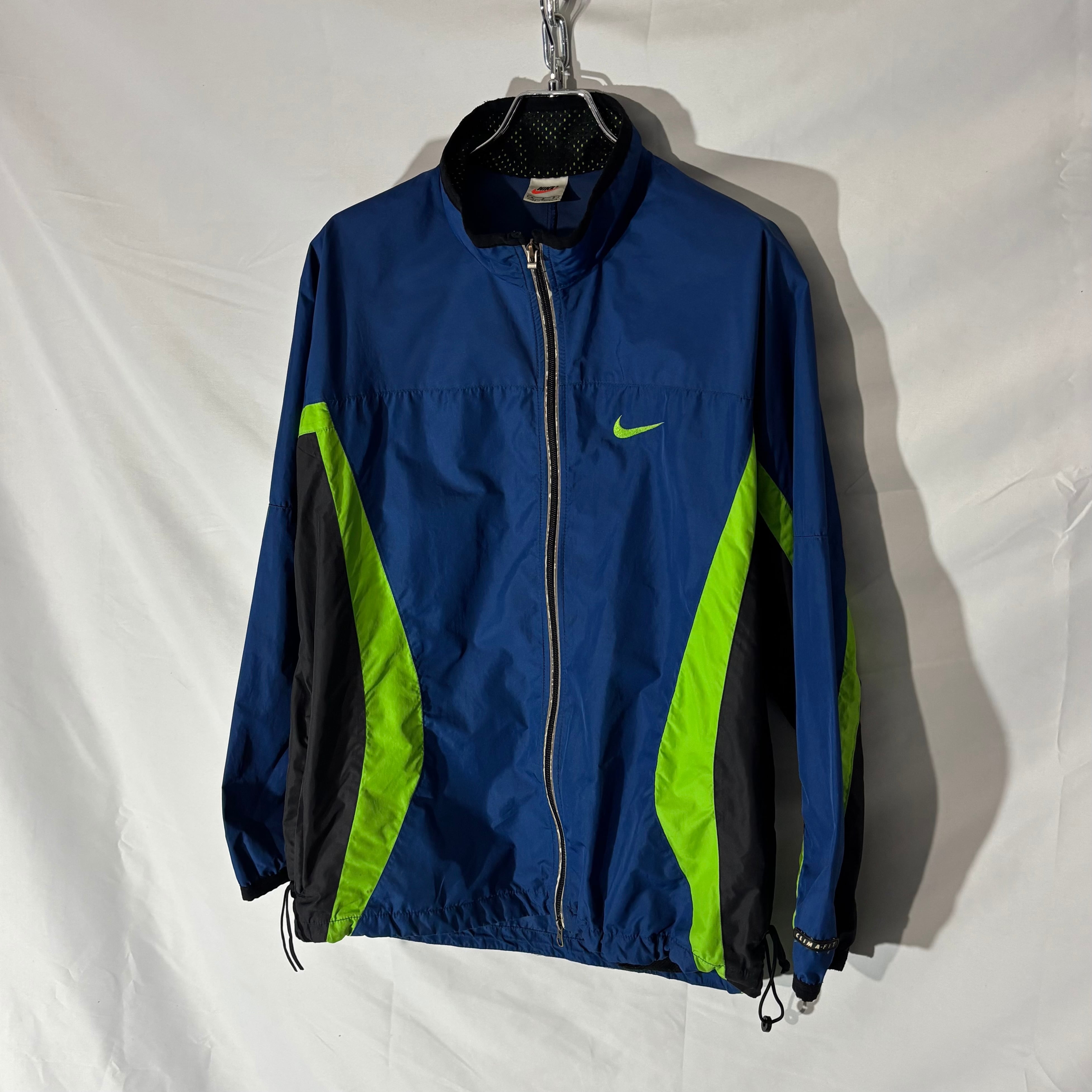 90年代らしい配色と切り替えが効いたNIKEのナイロンジャケット。ポケット内にドローコードが隠れるギミックとダブルジップ仕様。
