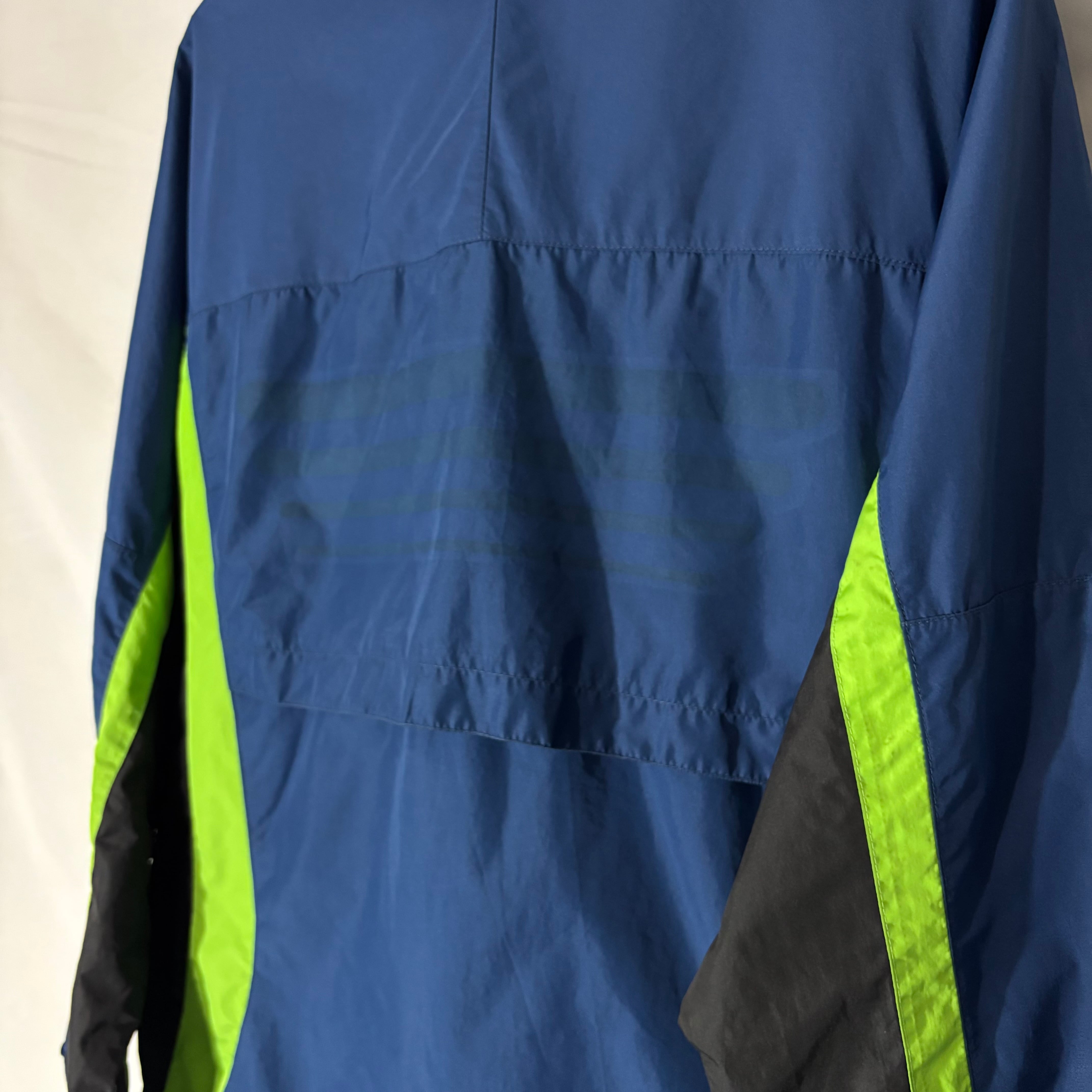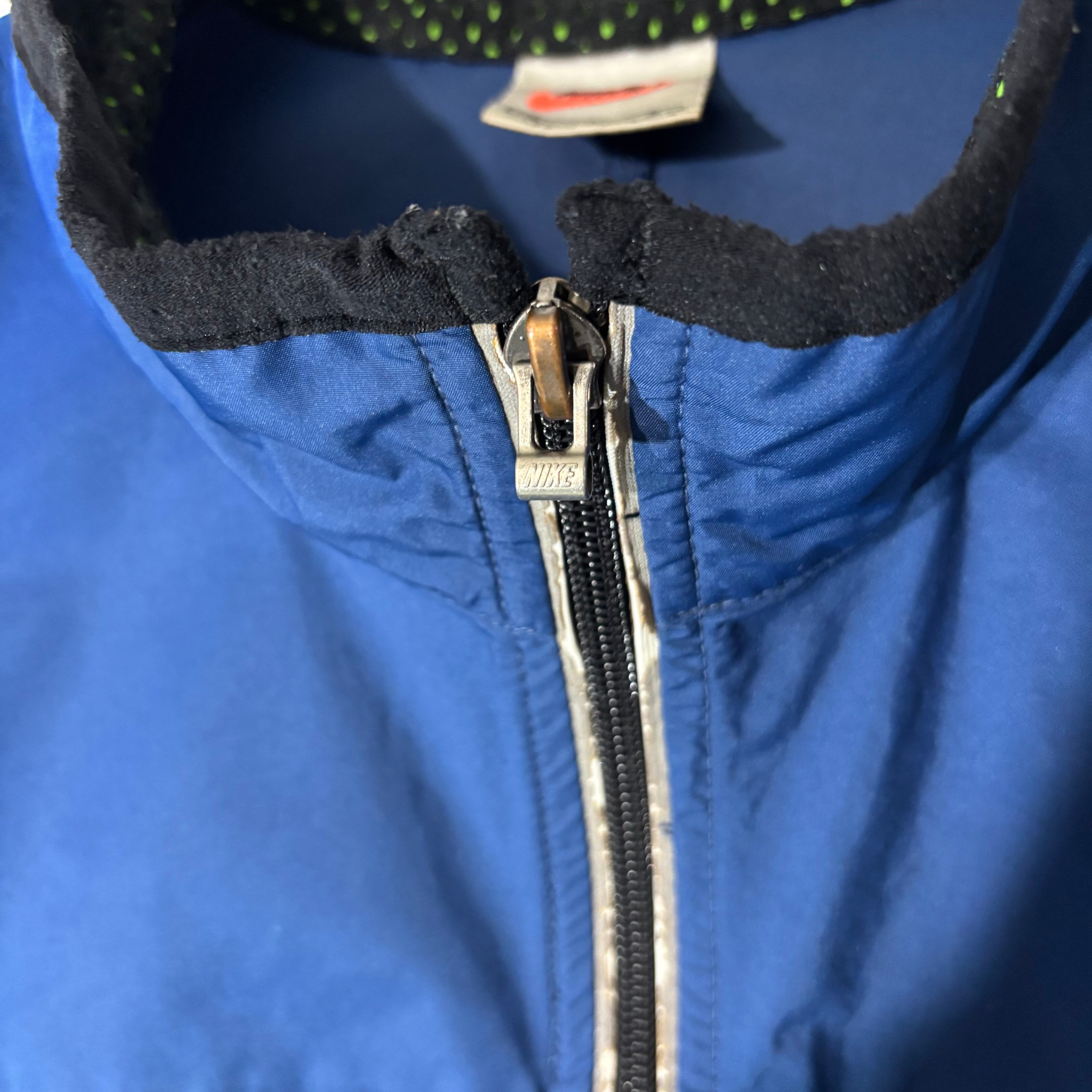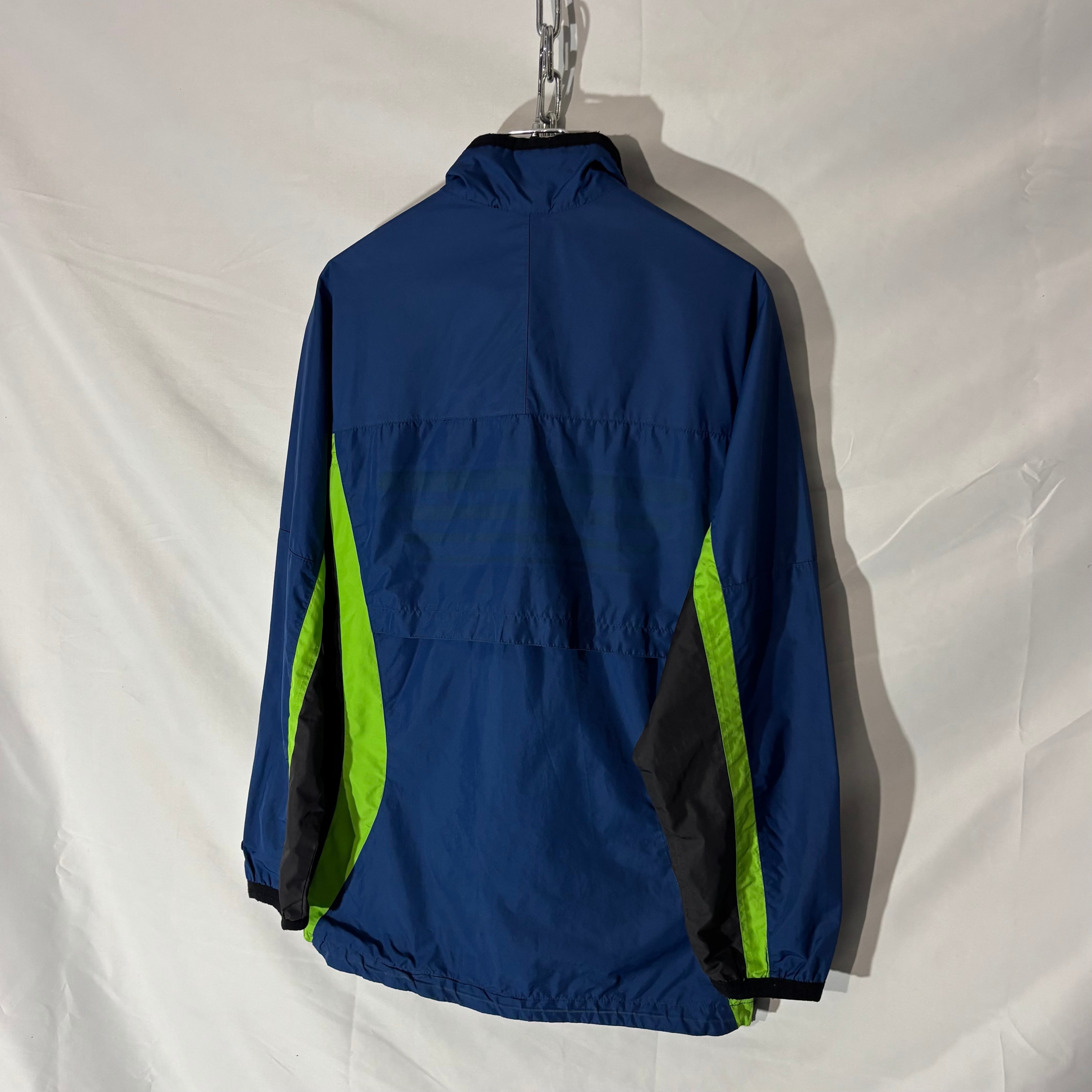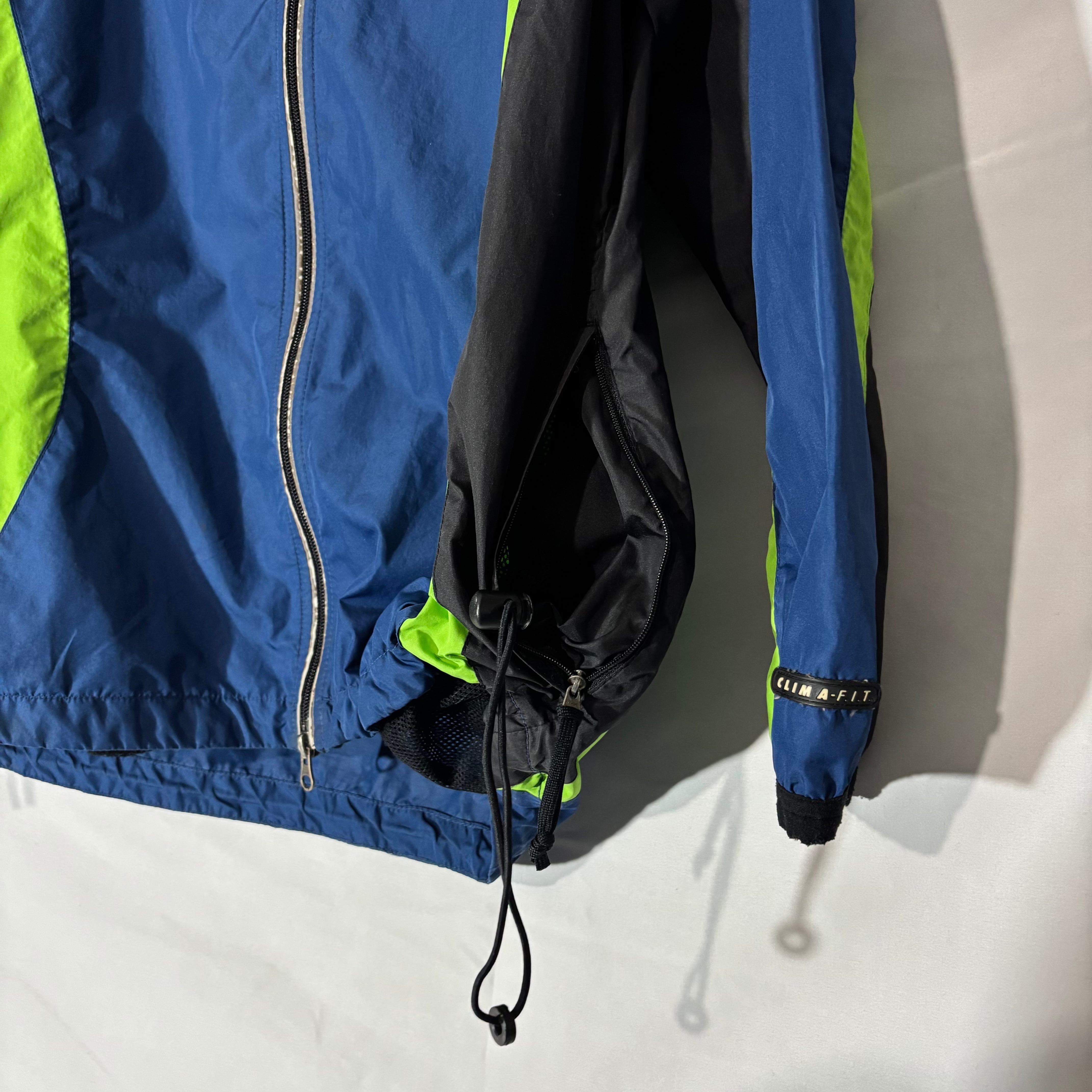 90年代らしい配色と切り替えが効いたNIKEのナイロンジャケット。ポケット内にドローコードが隠れるギミックとダブルジップ仕様。